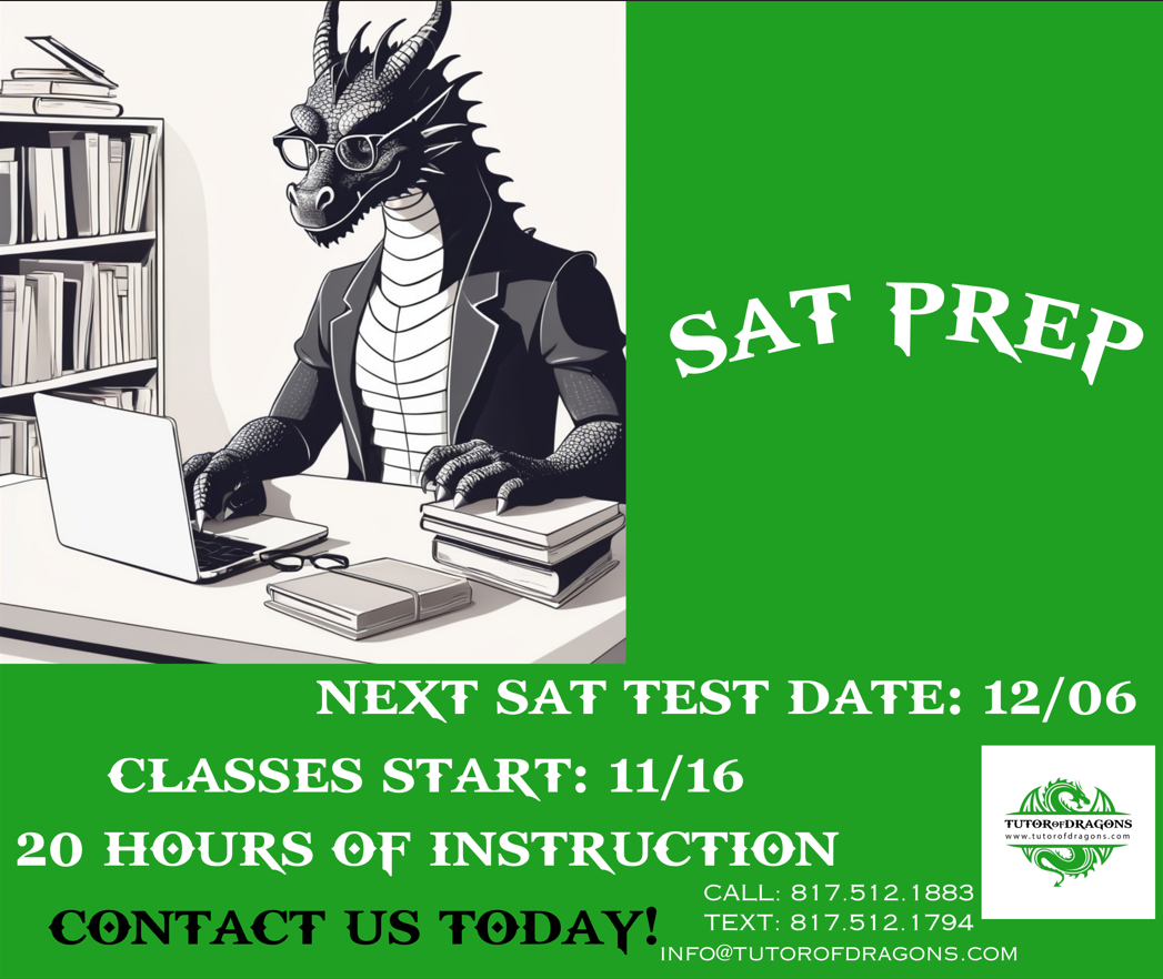Tutor of Dragons offers subject-specific instruction and academic tutoring tailored to the Carroll ISD curriculum. In addition, we offer structured preparation programs for the SAT and ACT examinations.