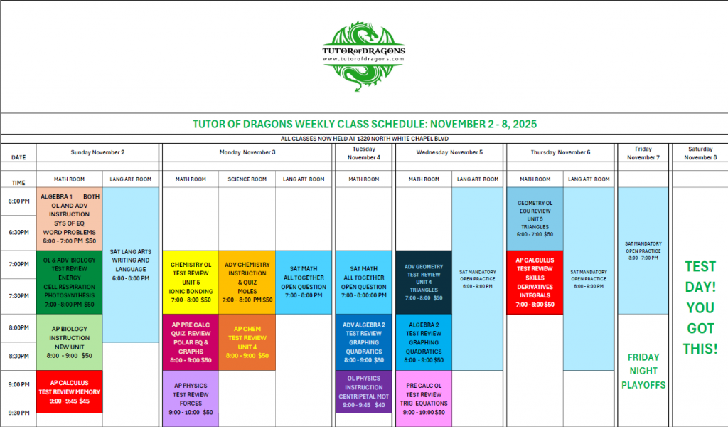We are here to support your student’s success and are always ready to assist with your inquiries. You may fill out the form below, contact us at info@tutorofdragons.com, call: 817- 512-1883 or text: 817-512-1794!